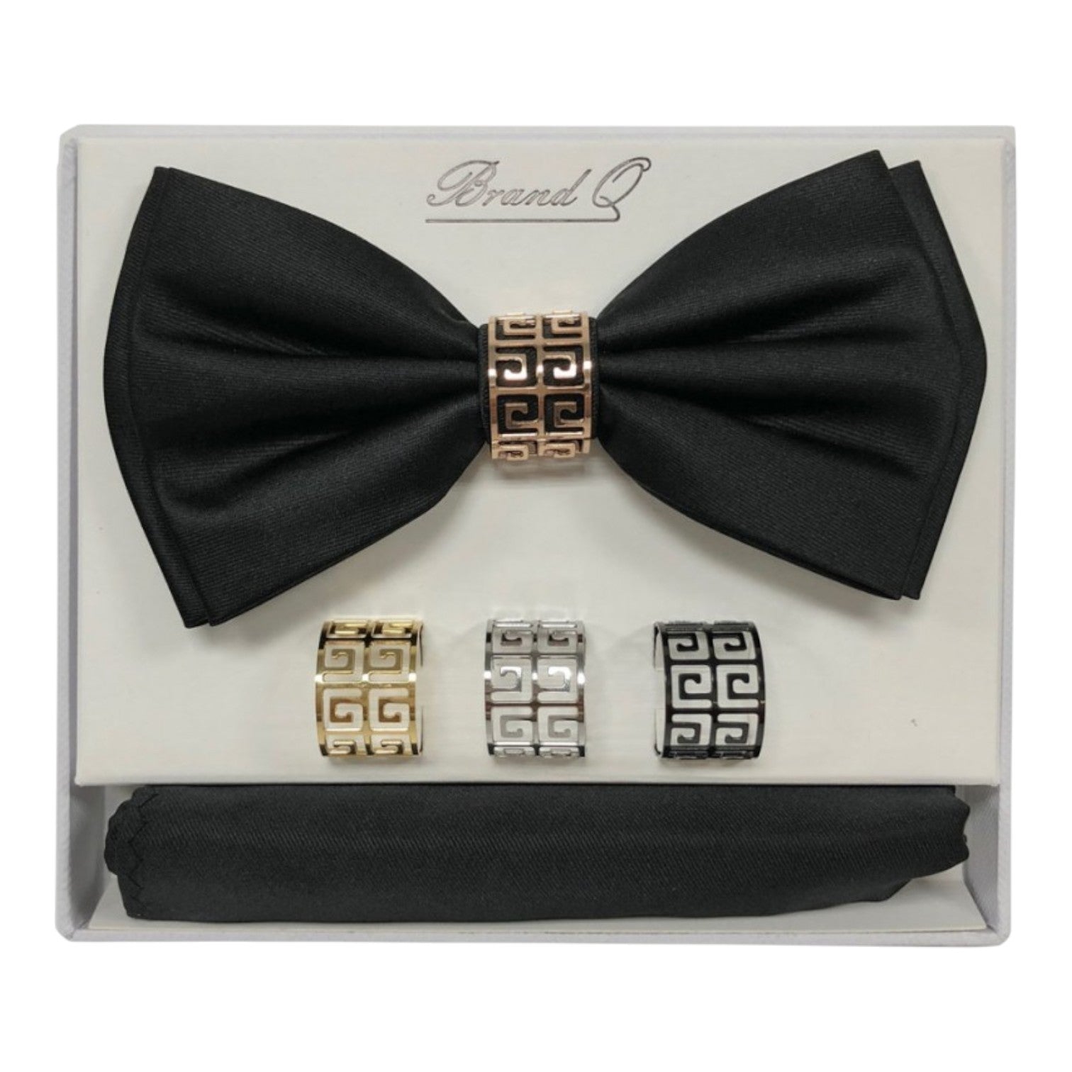 - Microfiber Bowtie with Matching Hanky & Rings