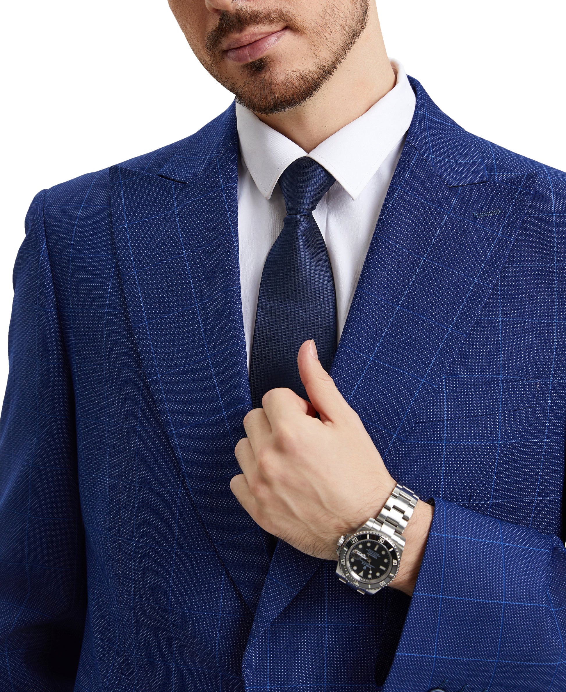 Stacy Adams Hybrid-Fit Vested Suit w/ U-Shaped Vest, Windowpane Royal Blue